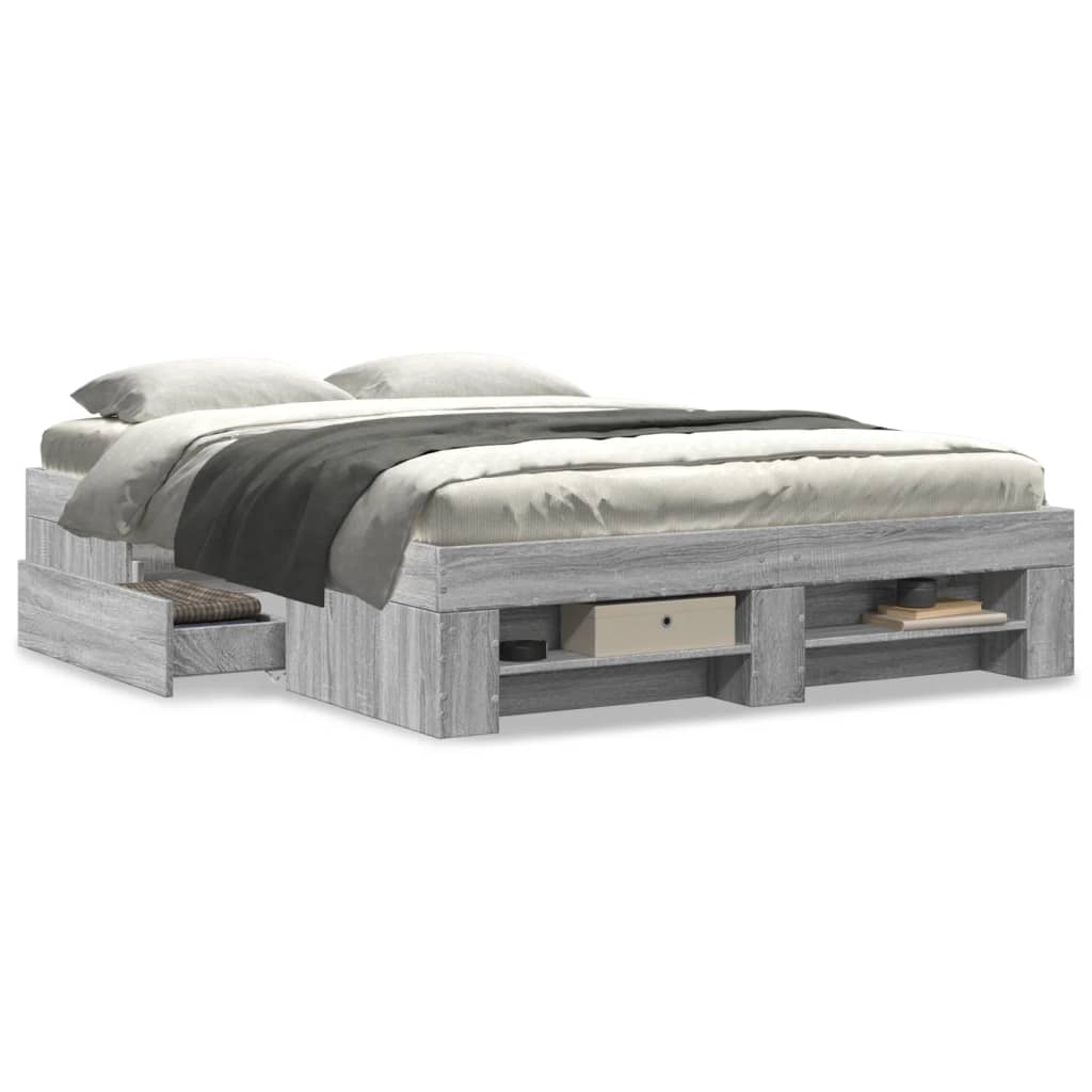 Cadru de pat, gri sonoma, 135x190 cm, lemn prelucrat GartenMobel Dekor