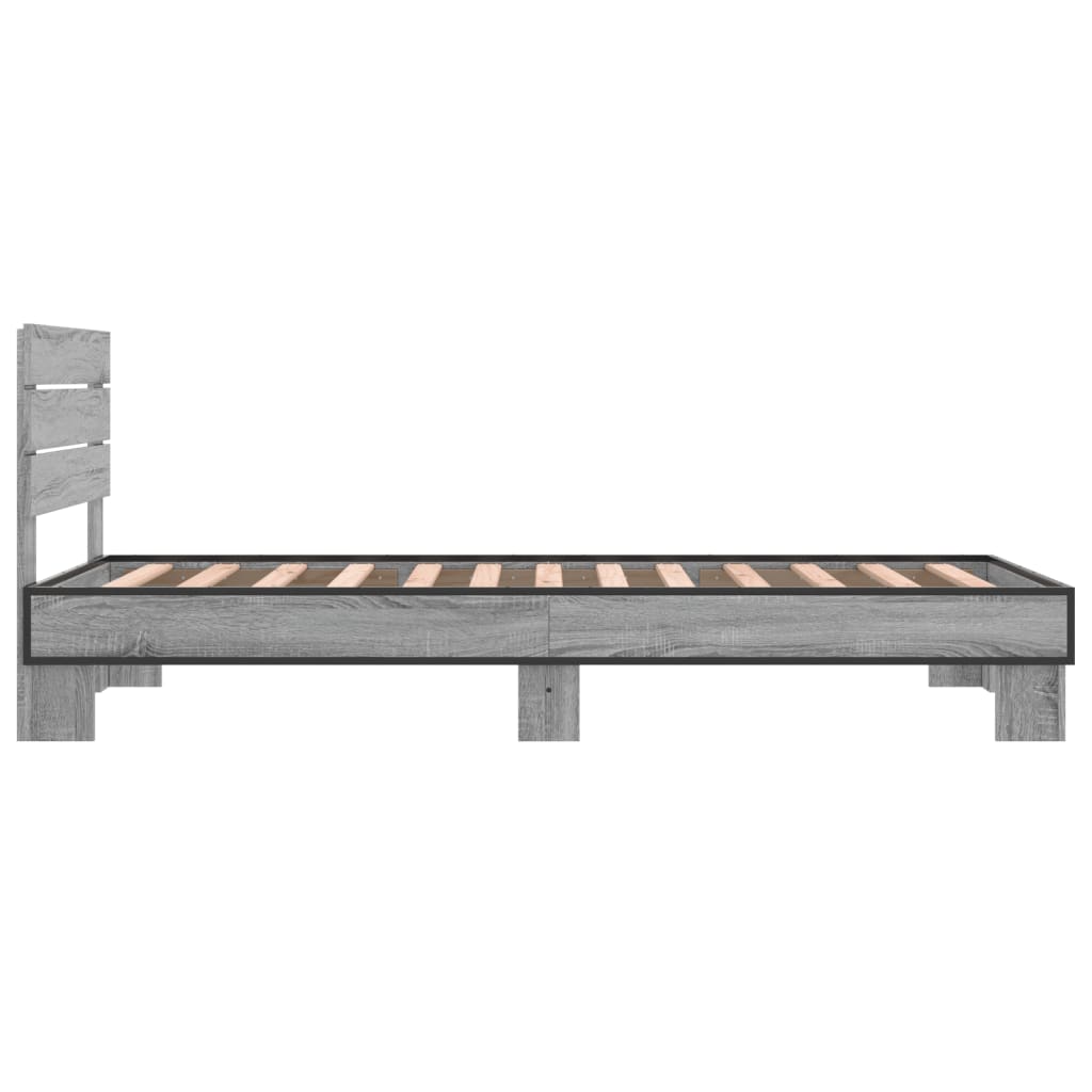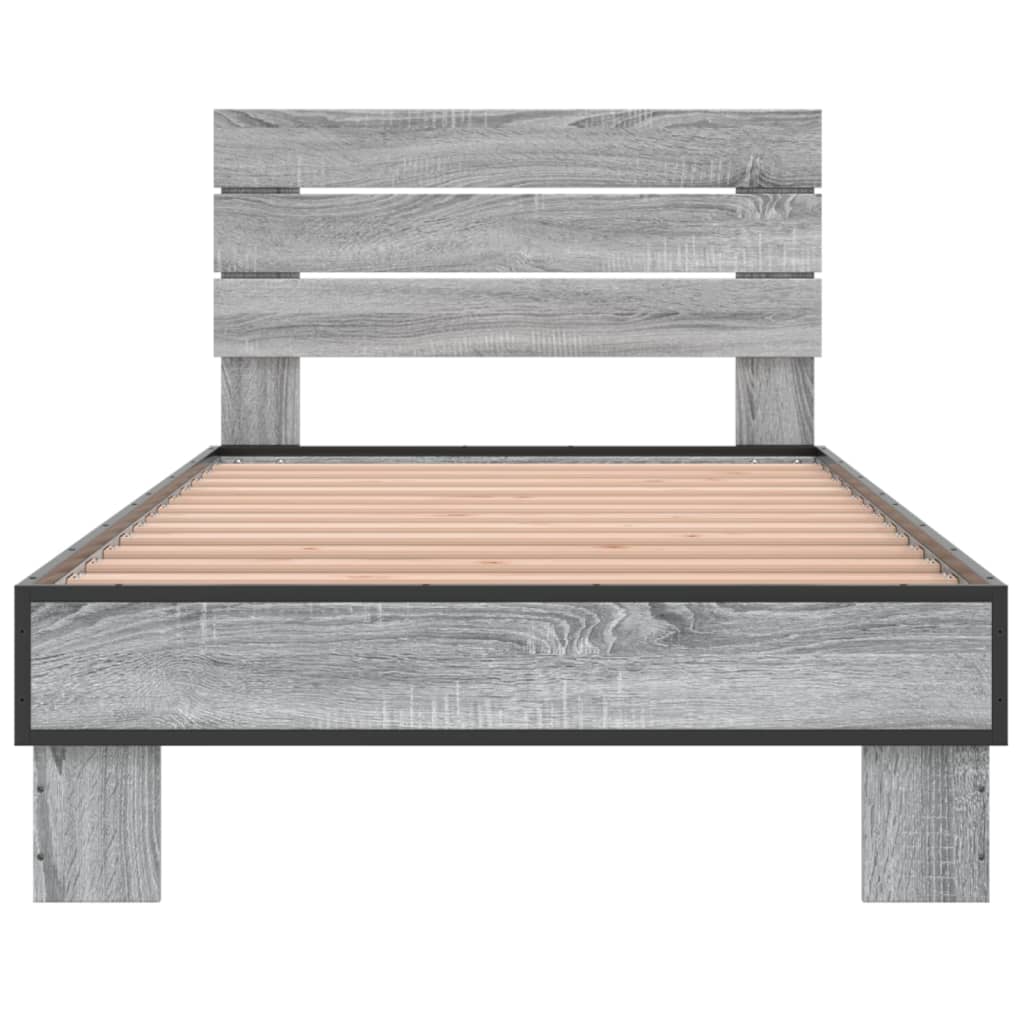 Cadru de pat, gri sonoma, 90x200 cm, lemn prelucrat și metal GartenMobel Dekor