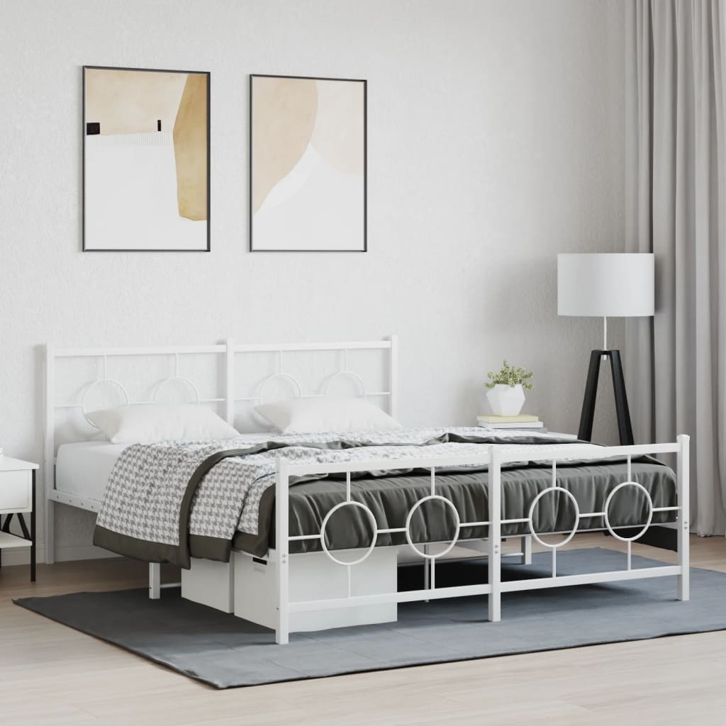 Cadru de pat metalic cu tăblie, alb, 150x200 cm GartenMobel Dekor