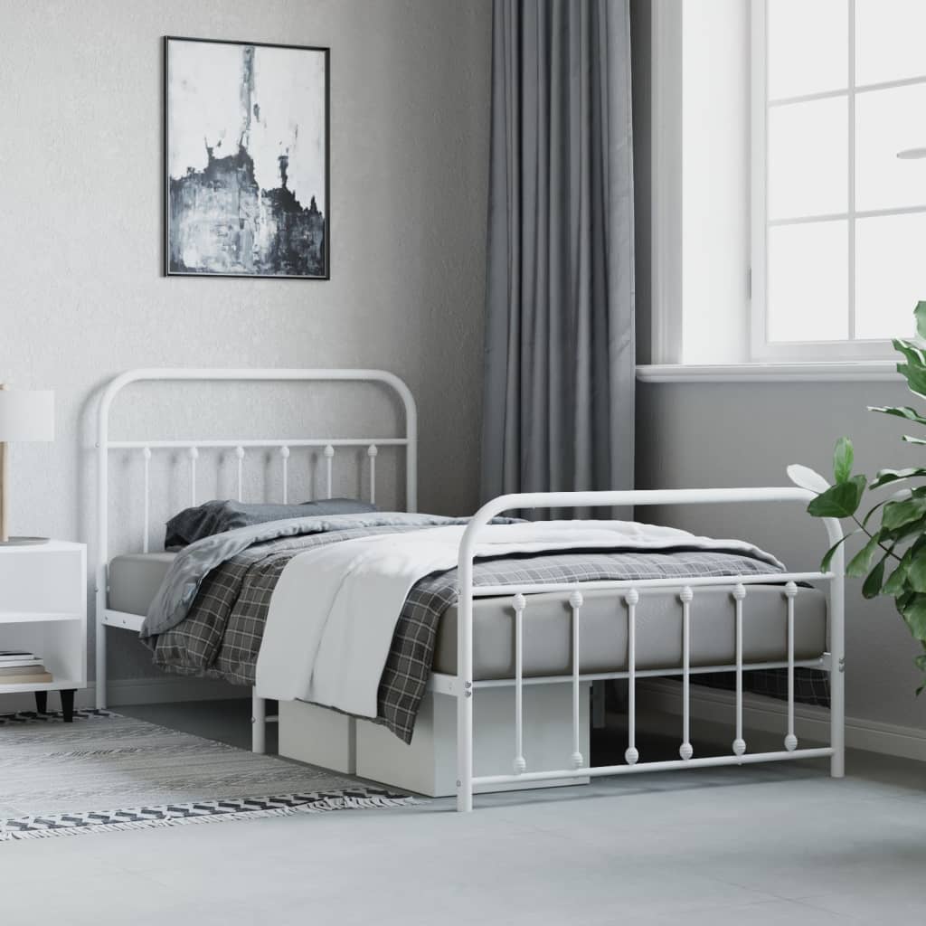 Cadru de pat metalic cu tăblie de cap/picioare, alb, 100x200 cm GartenMobel Dekor