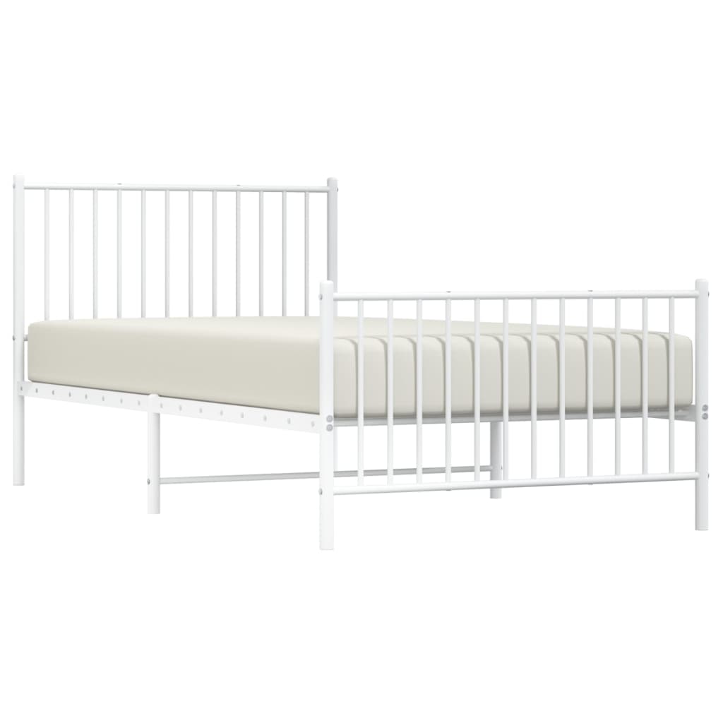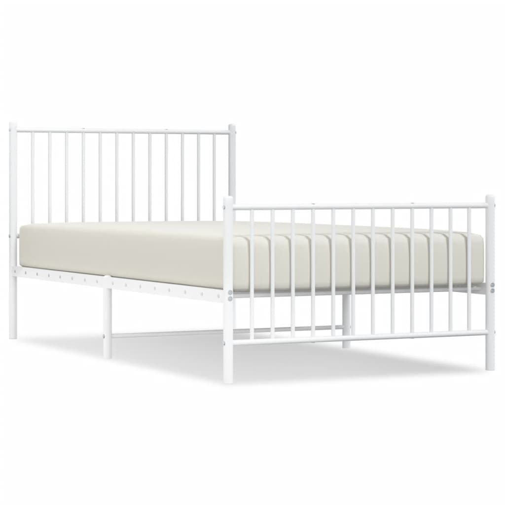 Cadru de pat metalic cu tăblie de cap/picioare, alb, 100x200 cm GartenMobel Dekor