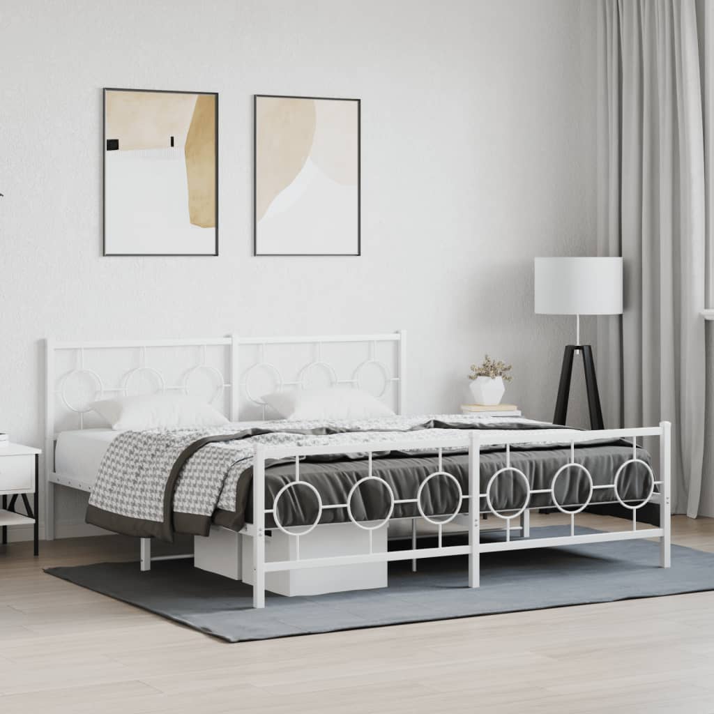 Cadru de pat metalic cu tăblie de cap/picioare, alb, 180x200 cm GartenMobel Dekor