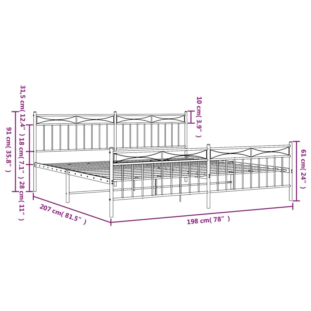 Cadru de pat metalic cu tăblie de cap/picioare, alb, 193x203 cm GartenMobel Dekor
