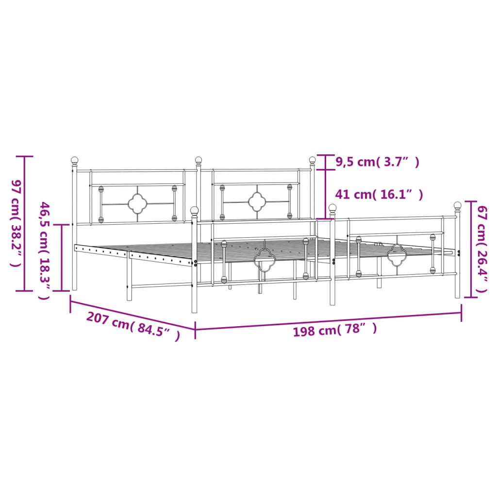 Cadru de pat metalic cu tăblie de cap/picioare, alb, 193x203 cm GartenMobel Dekor