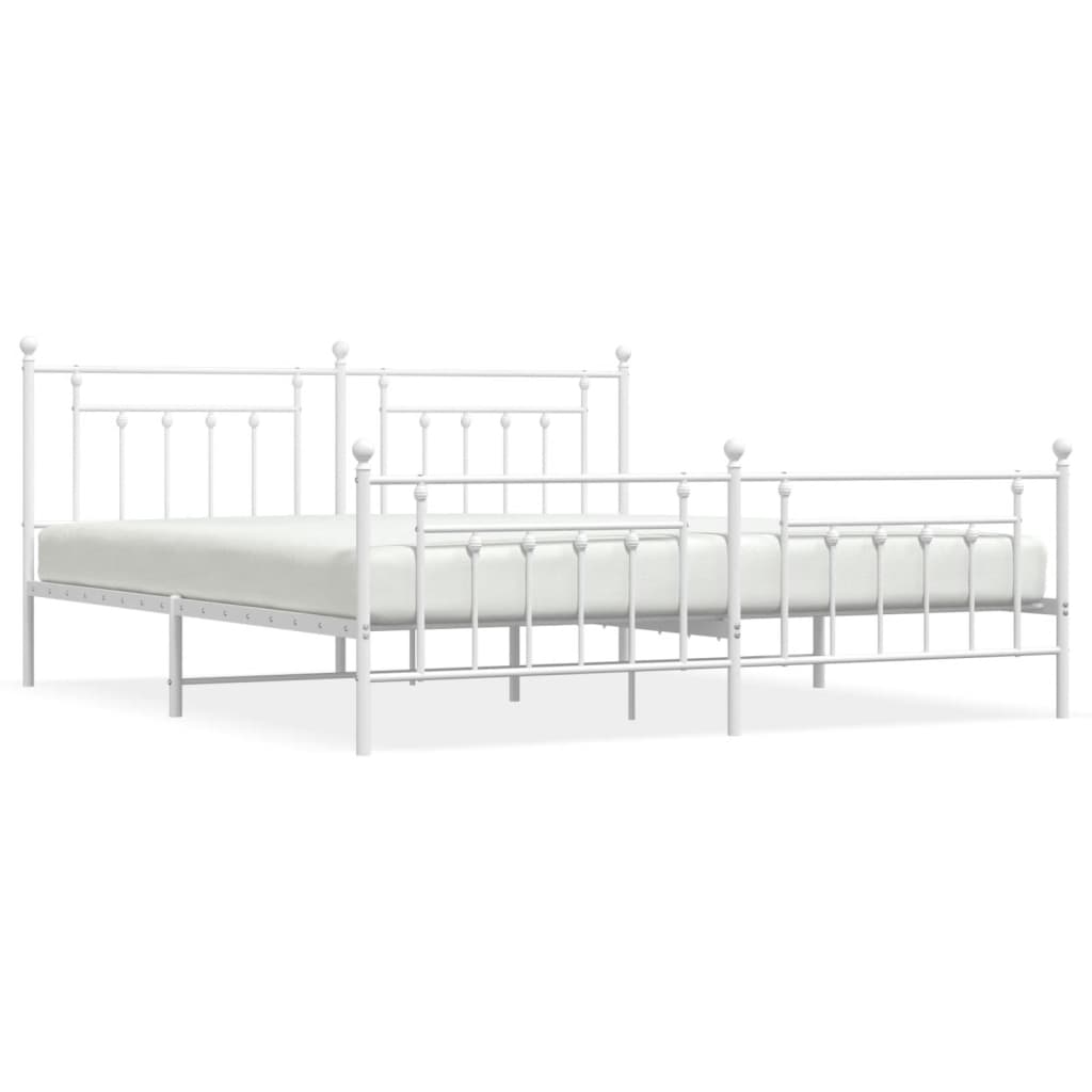 Cadru de pat metalic cu tăblie de cap/picioare, alb, 193x203 cm GartenMobel Dekor