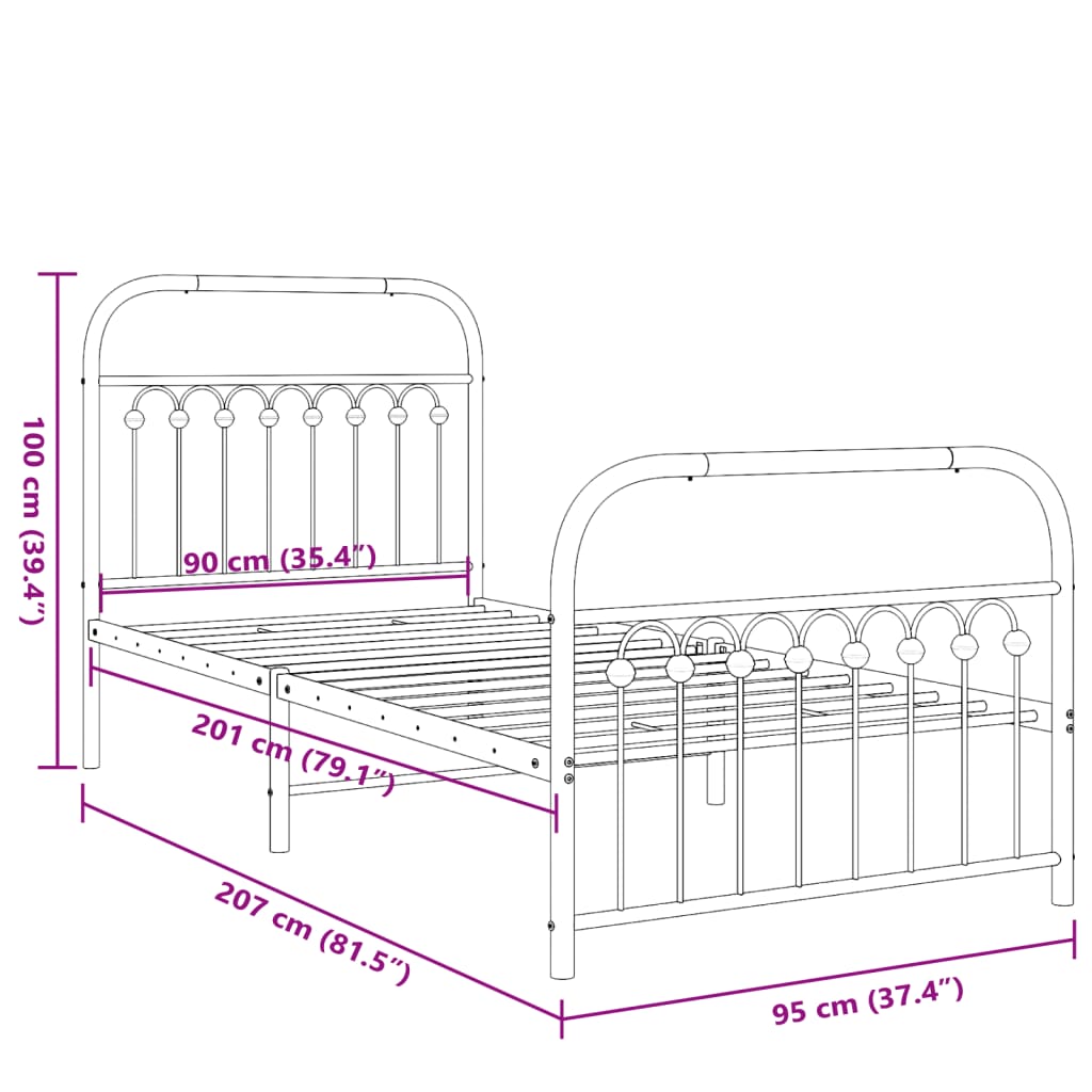 Cadru de pat metalic cu tăblie de cap/picioare, alb, 90x200 cm GartenMobel Dekor