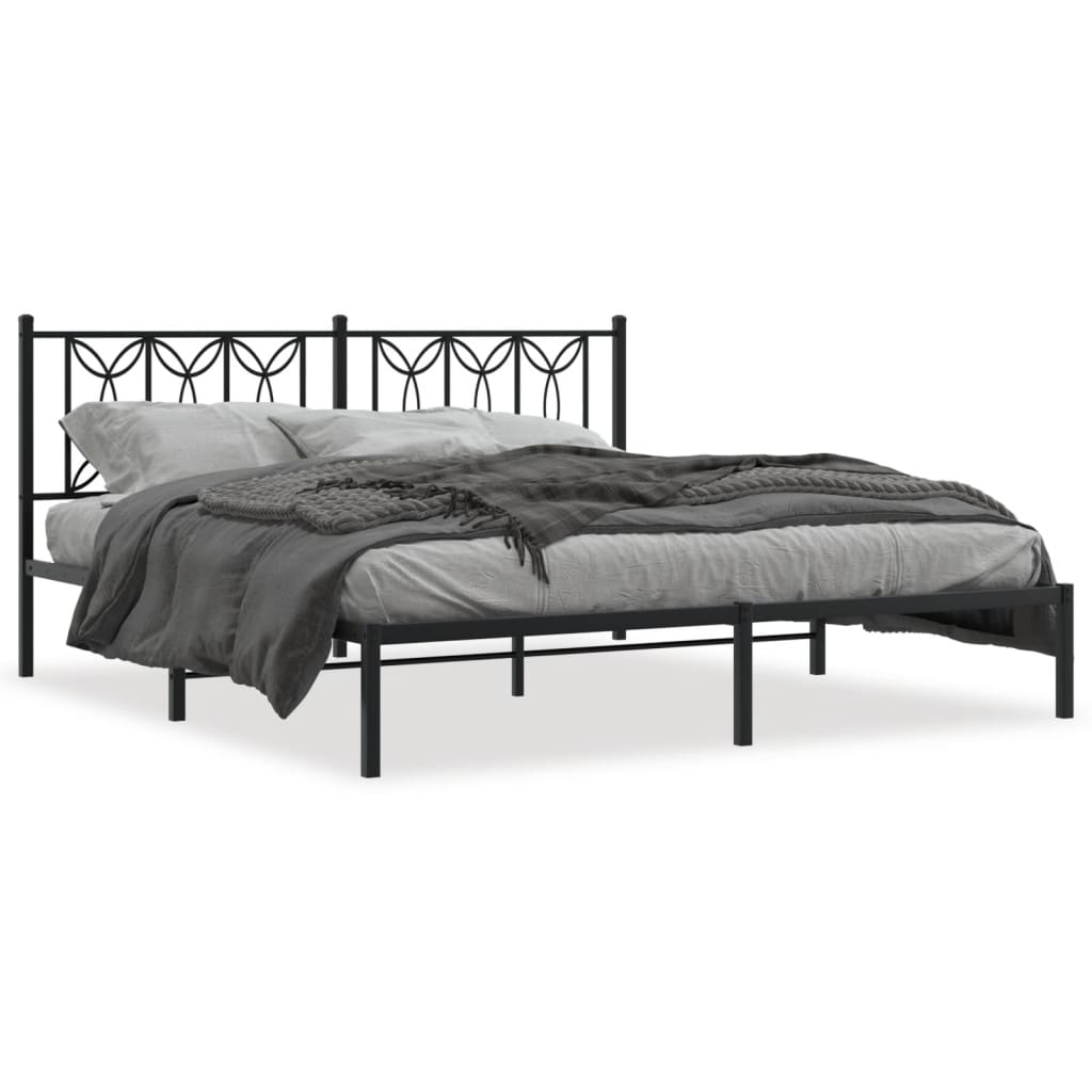 Cadru de pat metalic cu tăblie, negru, 180x200 cm GartenMobel Dekor