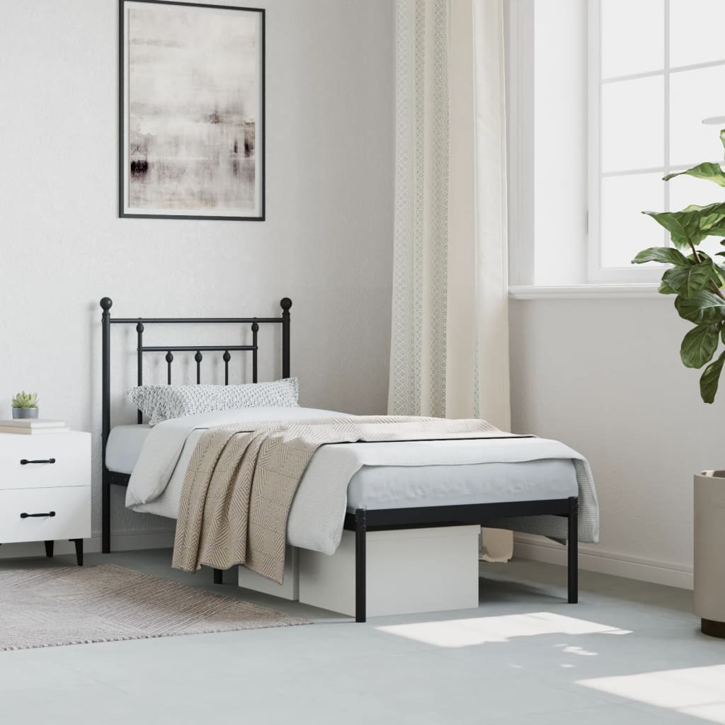 Cadru de pat metalic cu tăblie, negru, 75x190 cm GartenMobel Dekor