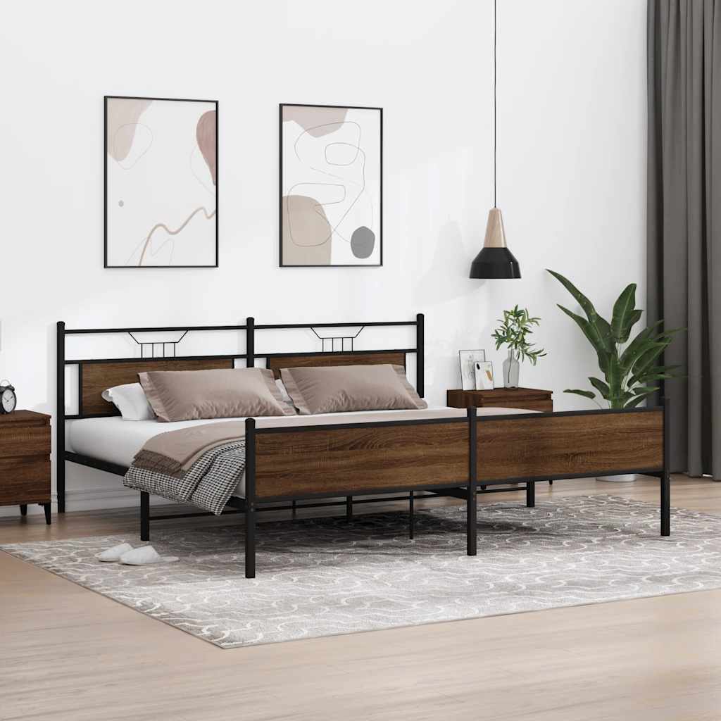 Cadru de pat metalic fără saltea, stejar maro, 193x203 cm GartenMobel Dekor