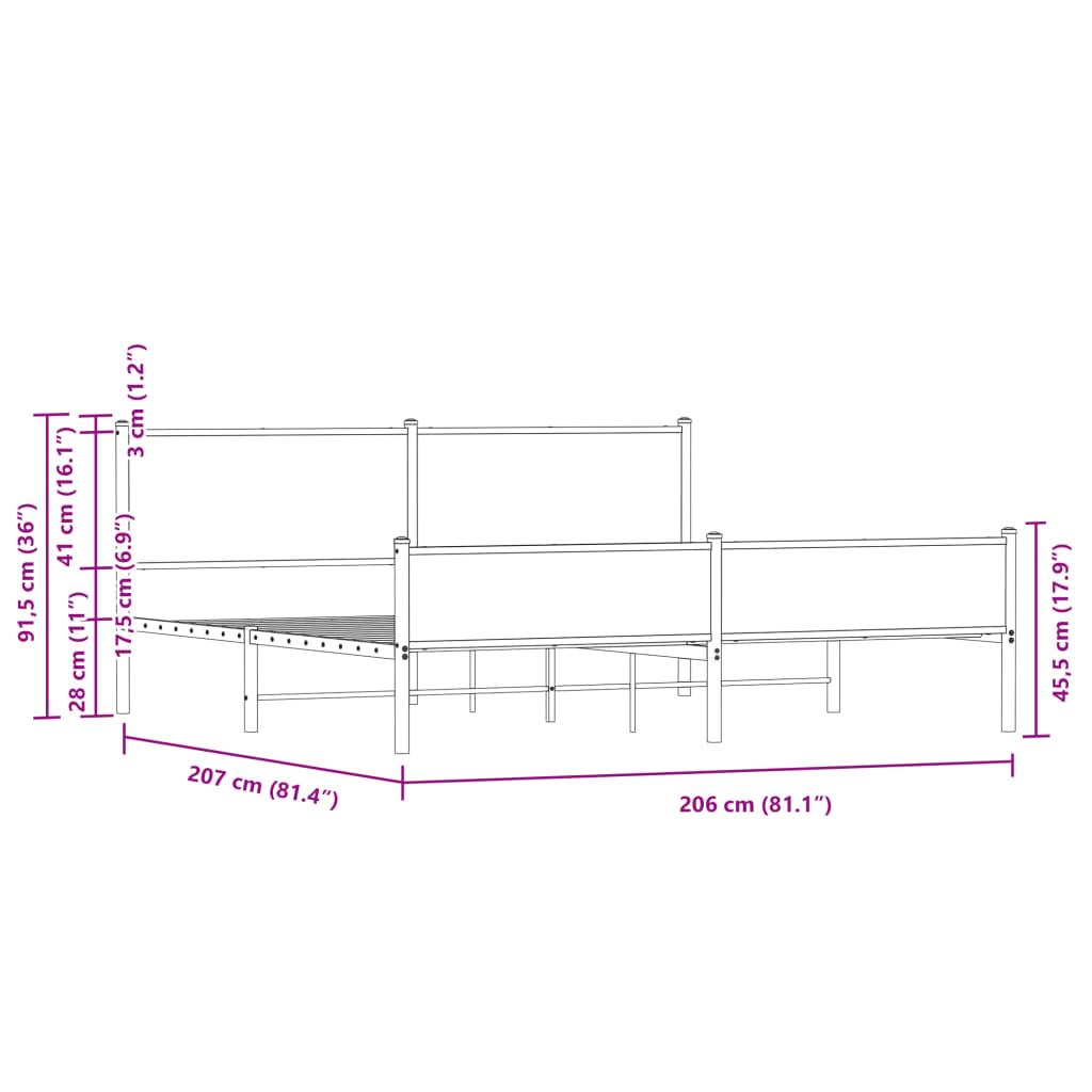 Cadru de pat metalic fără saltea, stejar maro, 200x200 cm GartenMobel Dekor