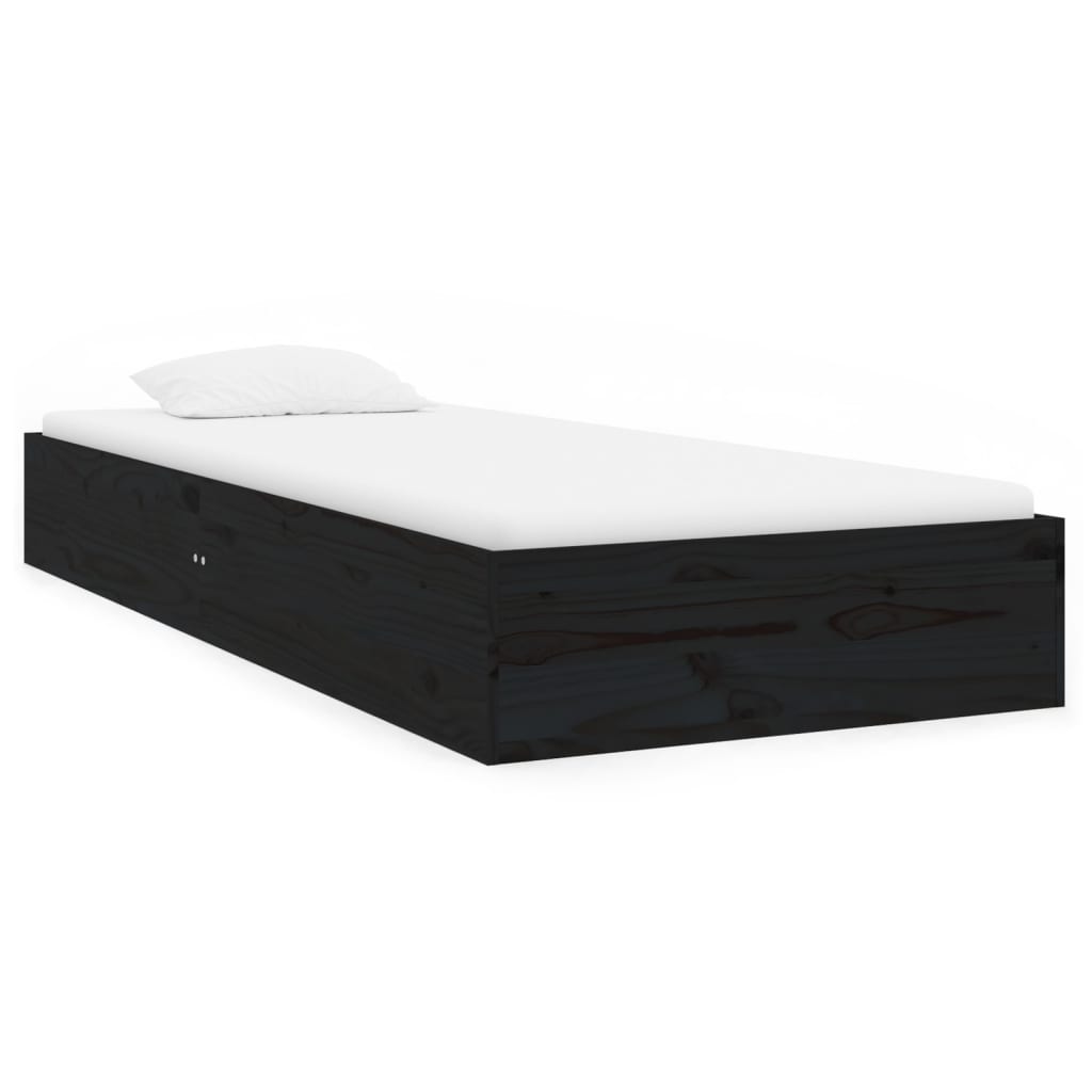 Cadru de pat mic single, negru, 75x190 cm, lemn masiv GartenMobel Dekor