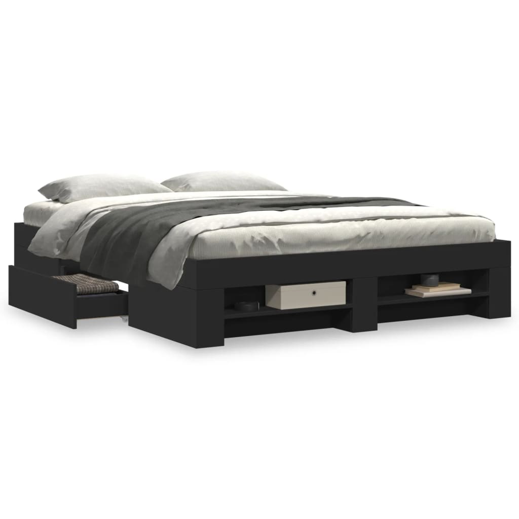 Cadru de pat, negru, 150x200 cm, lemn prelucrat GartenMobel Dekor