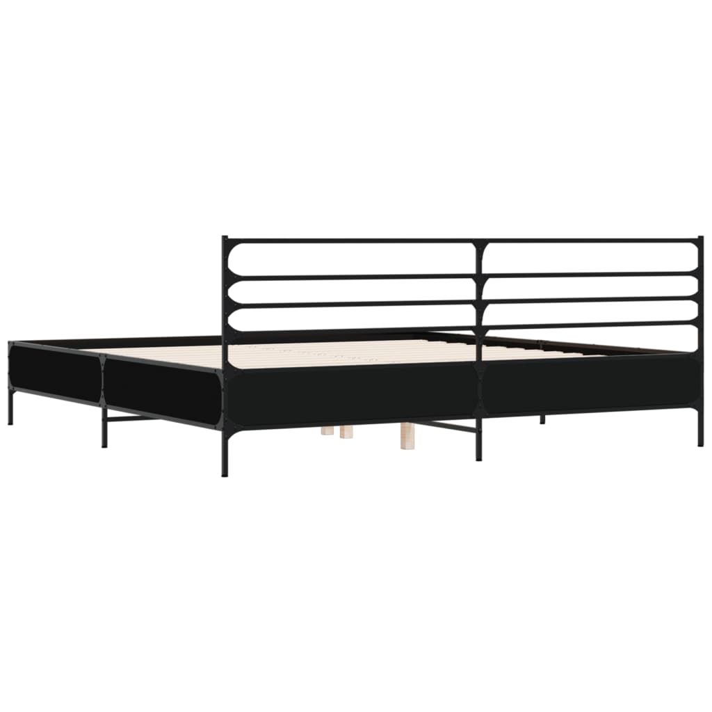 Cadru de pat, negru, 200x200 cm, lemn prelucrat și metal GartenMobel Dekor
