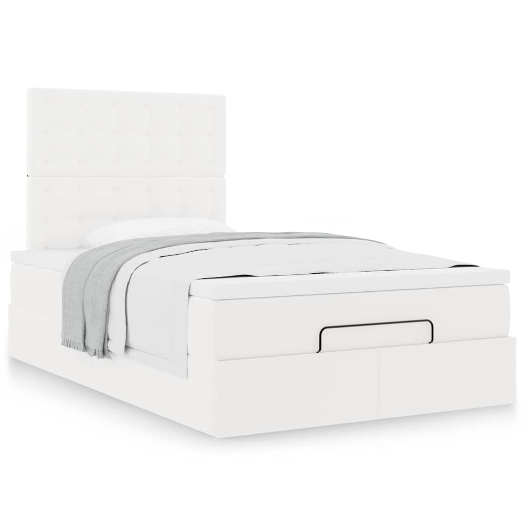 Cadru de pat otoman cu saltea alb 120x190 cm piele artificială GartenMobel Dekor