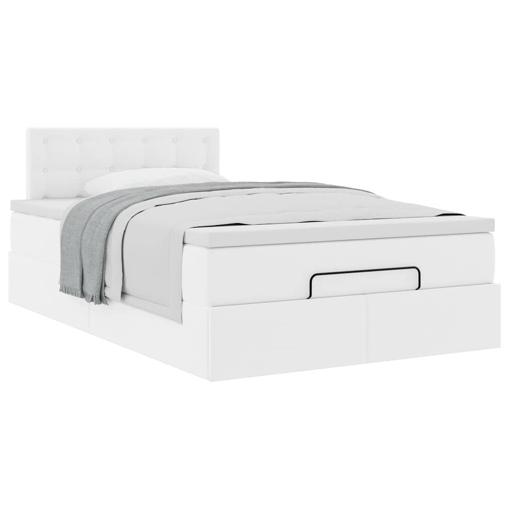Cadru de pat otoman cu saltea alb 120x200cm piele artificială GartenMobel Dekor