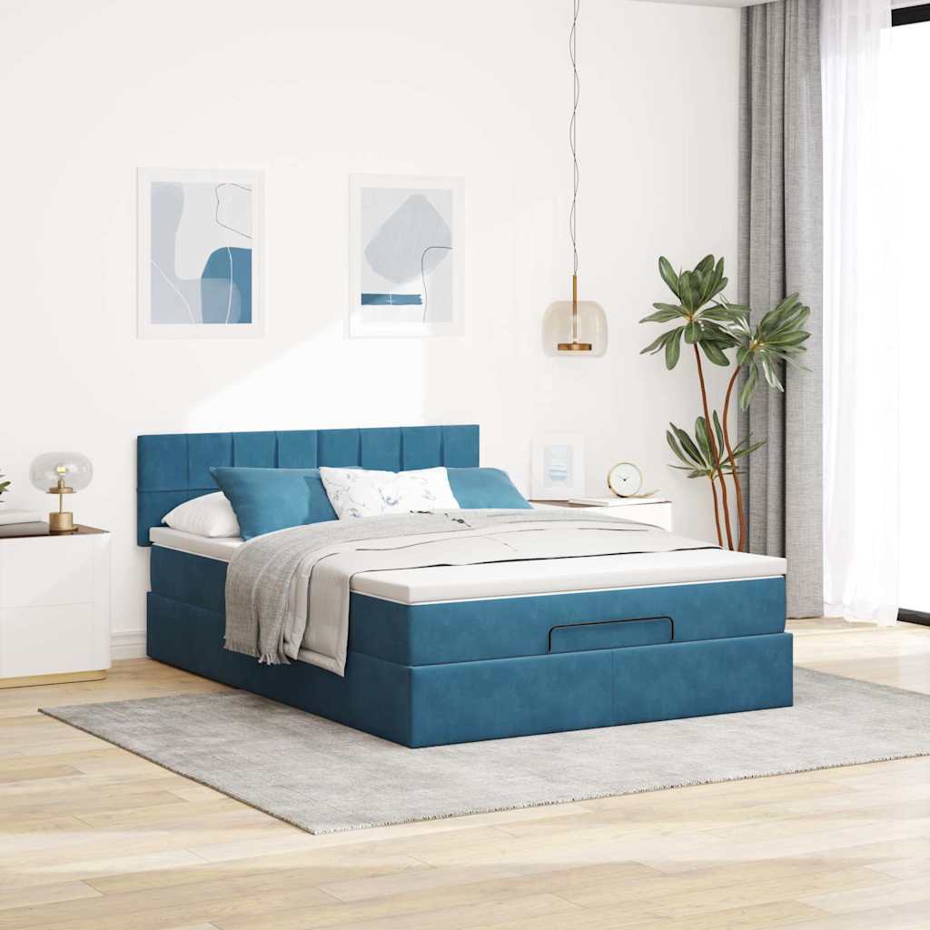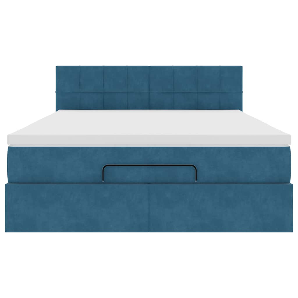 Cadru de pat otoman cu saltea Albastru închis 140x190cm catifea GartenMobel Dekor