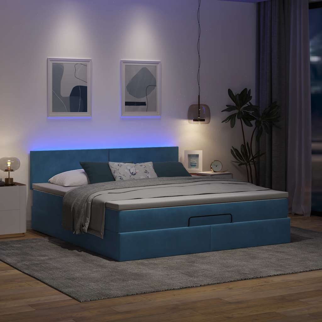 Cadru de pat otoman cu saltea Albastru închis 160x200cm catifea GartenMobel Dekor