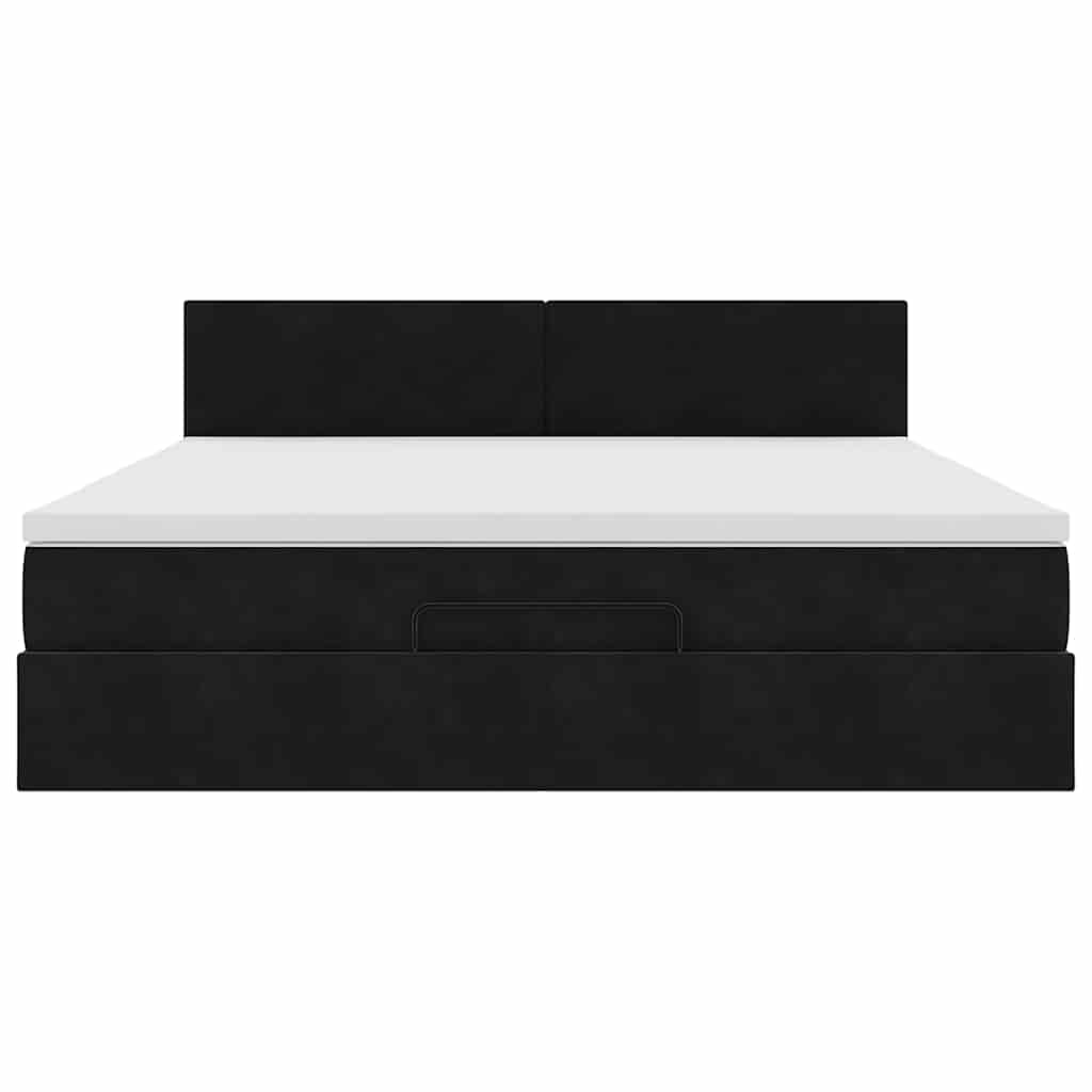 Cadru de pat otoman cu saltea, catifea neagră 180x200cm GartenMobel Dekor