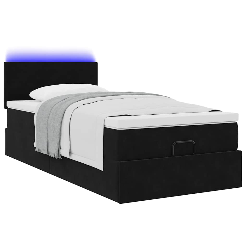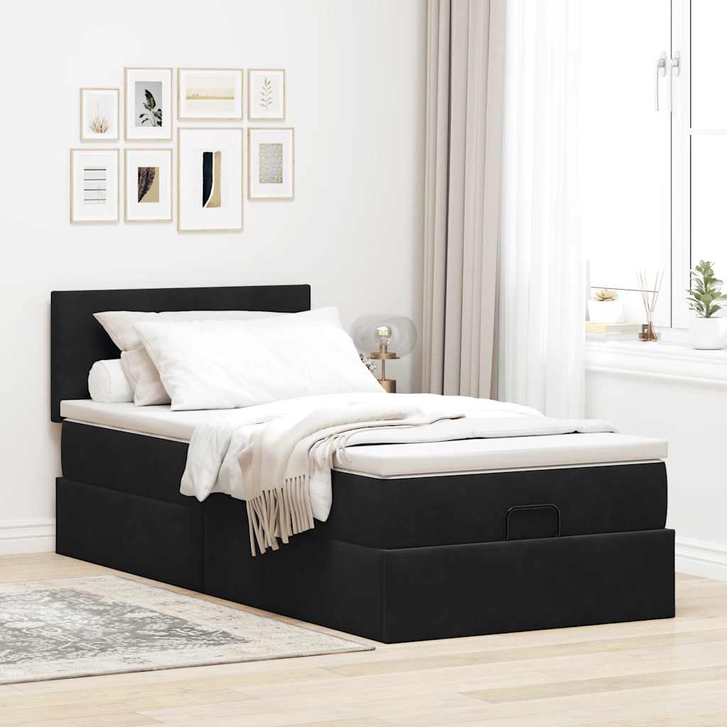 Cadru de pat otoman cu saltea, catifea neagră 90x200 cm GartenMobel Dekor
