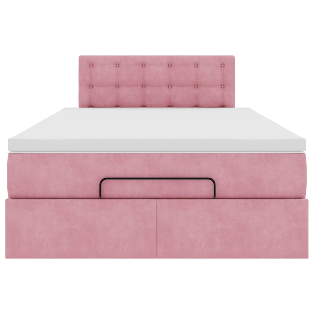 Cadru de pat otoman cu saltea, catifea roz 120x200cm GartenMobel Dekor
