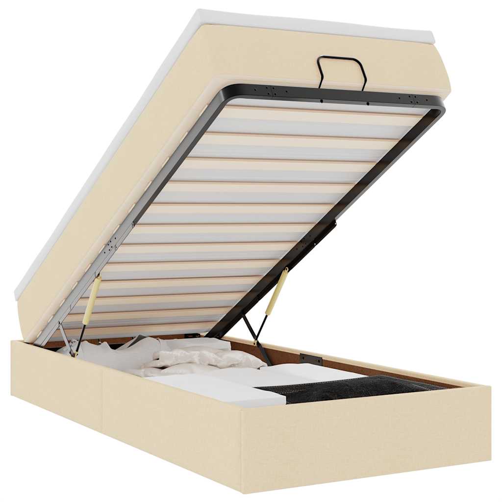 Cadru de pat otoman cu saltea crem 100x200cm stofa GartenMobel Dekor