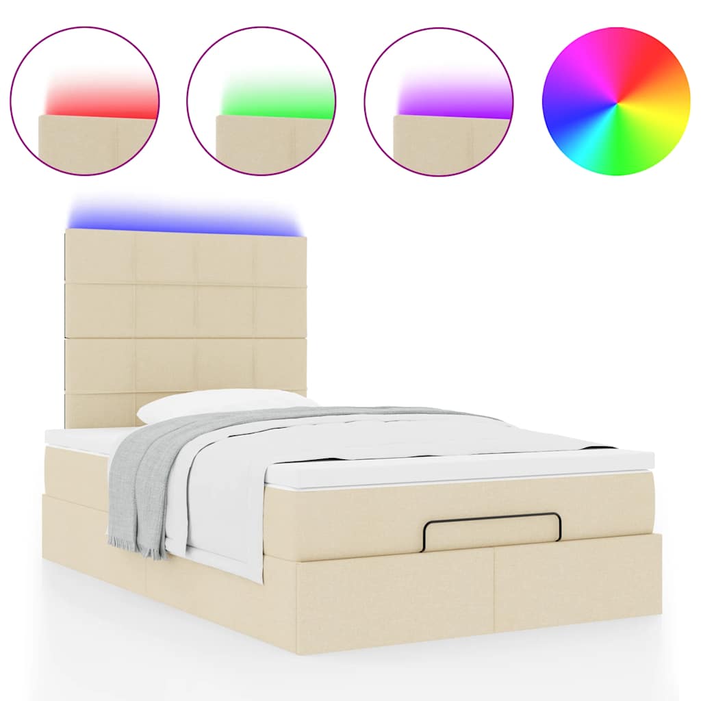 Cadru de pat otoman cu saltea crem 120x200cm stofa GartenMobel Dekor