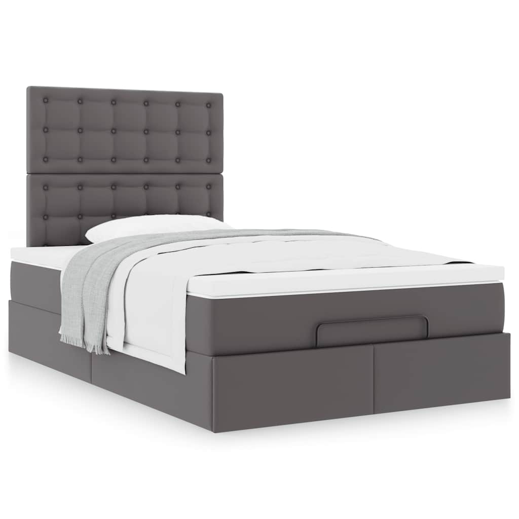 Cadru de pat otoman cu saltea gri 120x200cm piele artificială GartenMobel Dekor