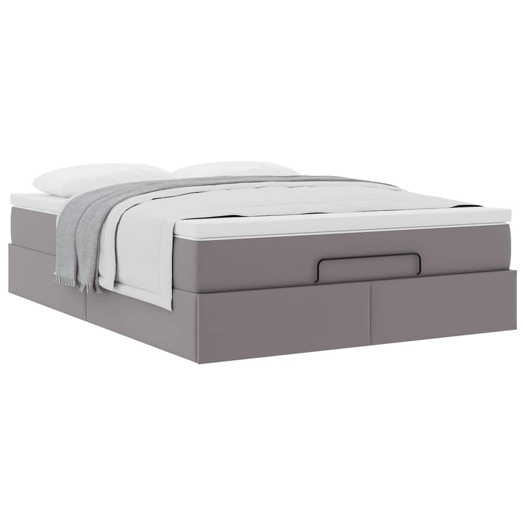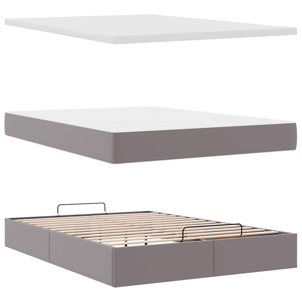 Cadru de pat otoman cu saltea gri 140x200cm piele artificială GartenMobel Dekor