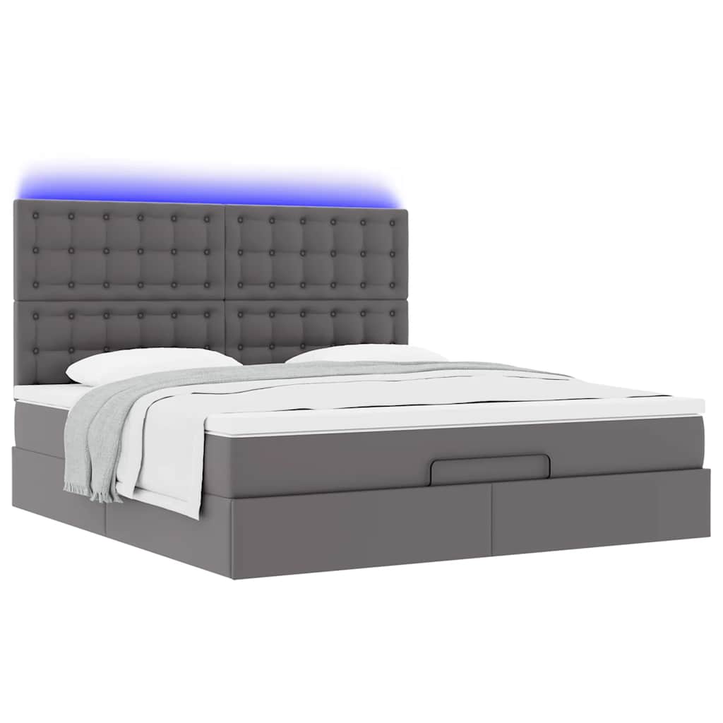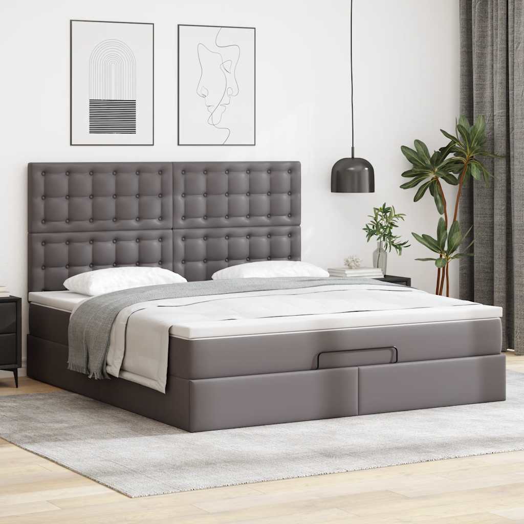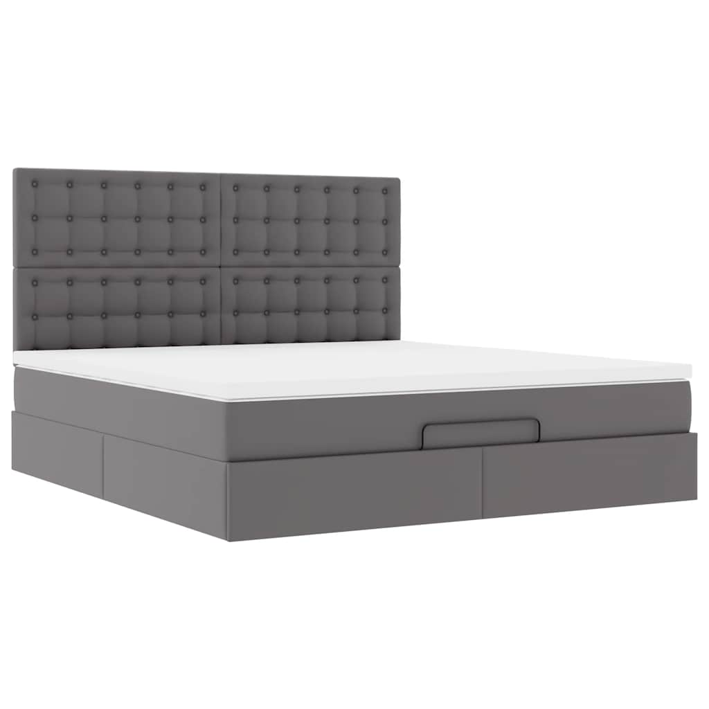 Cadru de pat otoman cu saltea gri 160x200cm piele artificială GartenMobel Dekor