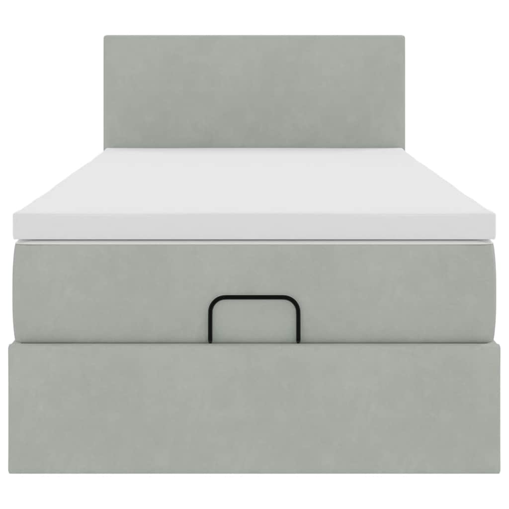 Cadru de pat otoman cu saltea Gri deschis 100x200cm catifea GartenMobel Dekor