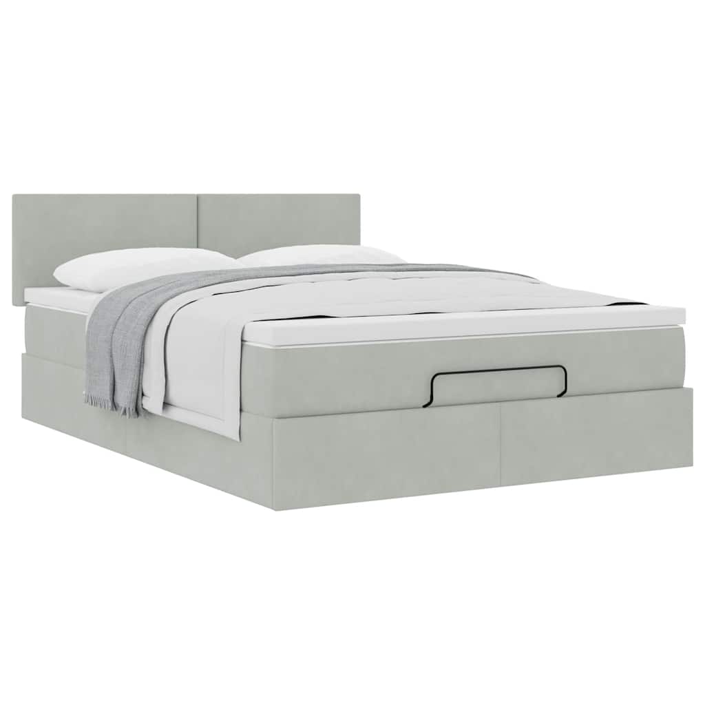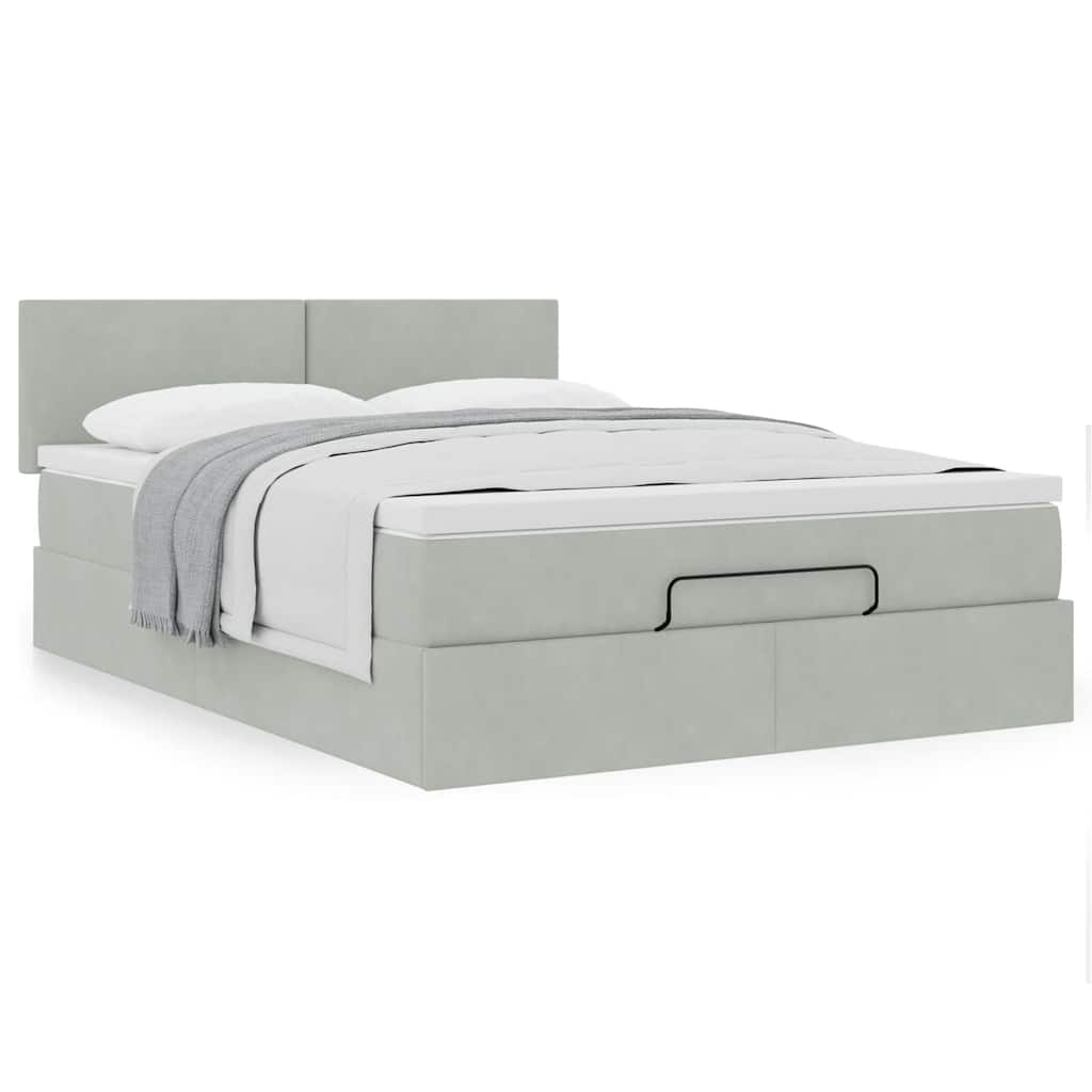 Cadru de pat otoman cu saltea Gri deschis 140x200cm catifea GartenMobel Dekor