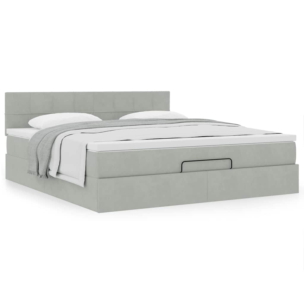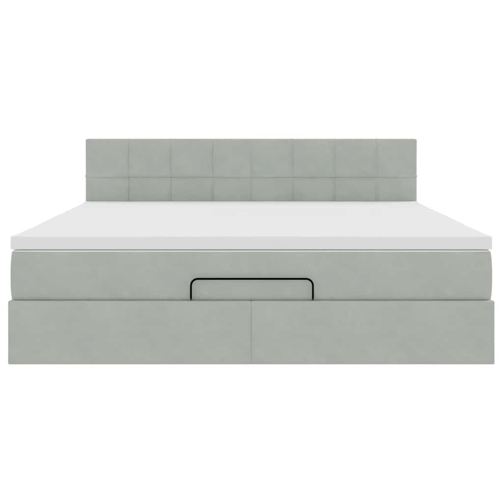 Cadru de pat otoman cu saltea Gri deschis 160x200cm catifea GartenMobel Dekor