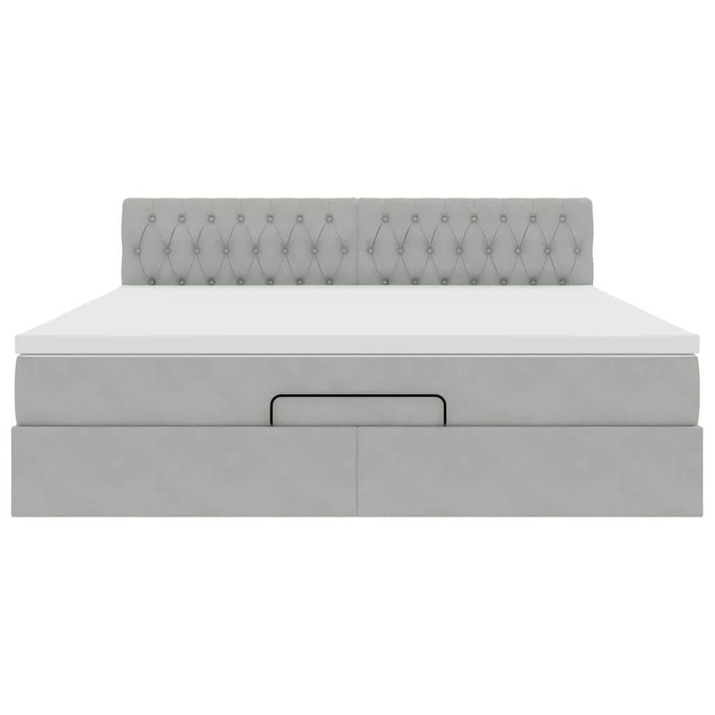 Cadru de pat otoman cu saltea Gri deschis 160x200cm catifea GartenMobel Dekor