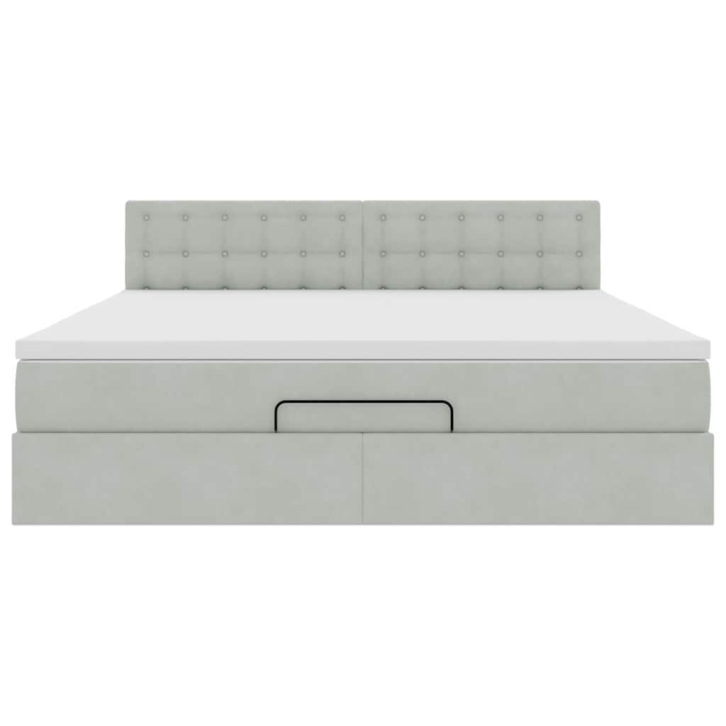 Cadru de pat otoman cu saltea Gri deschis 160x200cm catifea GartenMobel Dekor