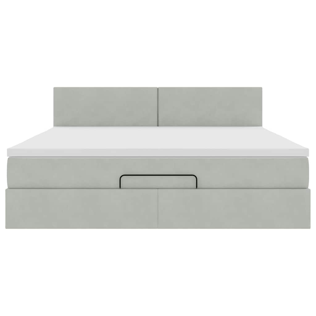 Cadru de pat otoman cu saltea Gri deschis 160x200cm catifea GartenMobel Dekor