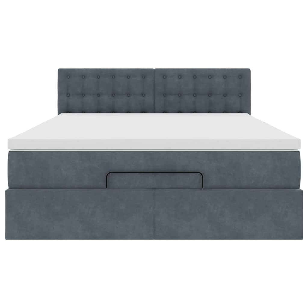 Cadru de pat otoman cu saltea Gri închis 140x190cm catifea GartenMobel Dekor