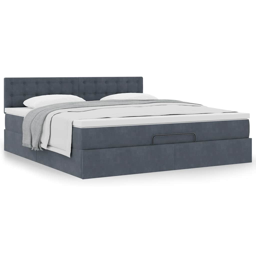 Cadru de pat otoman cu saltea Gri închis 180x200cm catifea GartenMobel Dekor