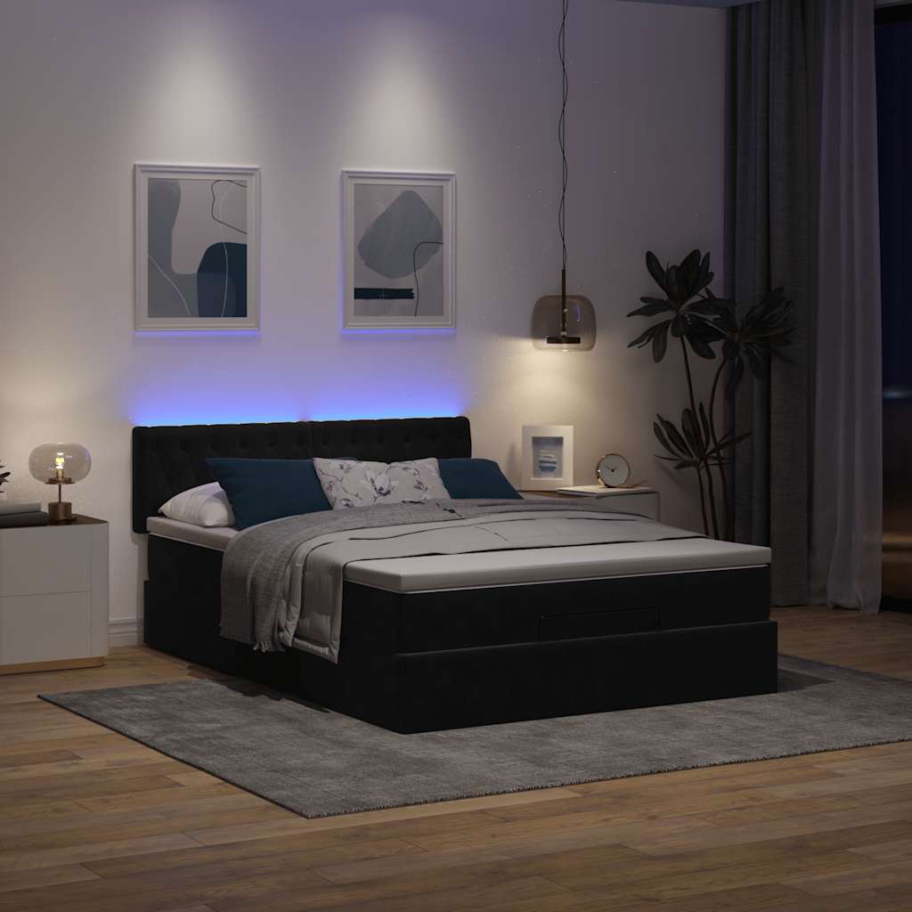 Cadru de pat otoman cu saltea neagră 140x190cm catifea GartenMobel Dekor