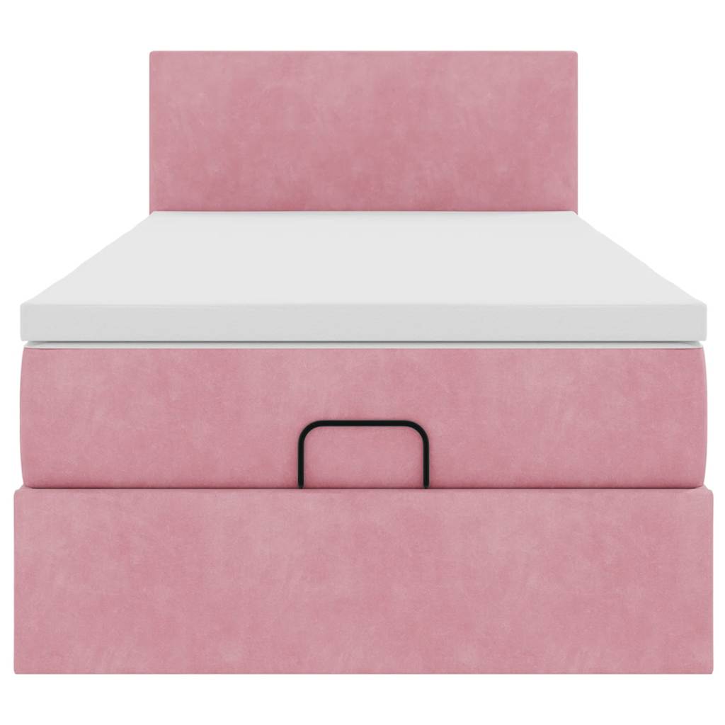Cadru de pat otoman cu saltea roz 100x200cm catifea GartenMobel Dekor