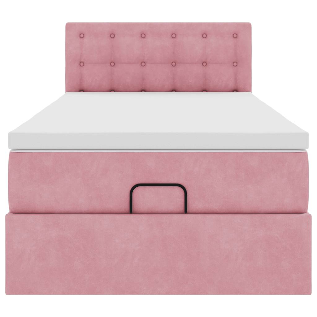 Cadru de pat otoman cu saltea roz 100x200cm catifea GartenMobel Dekor