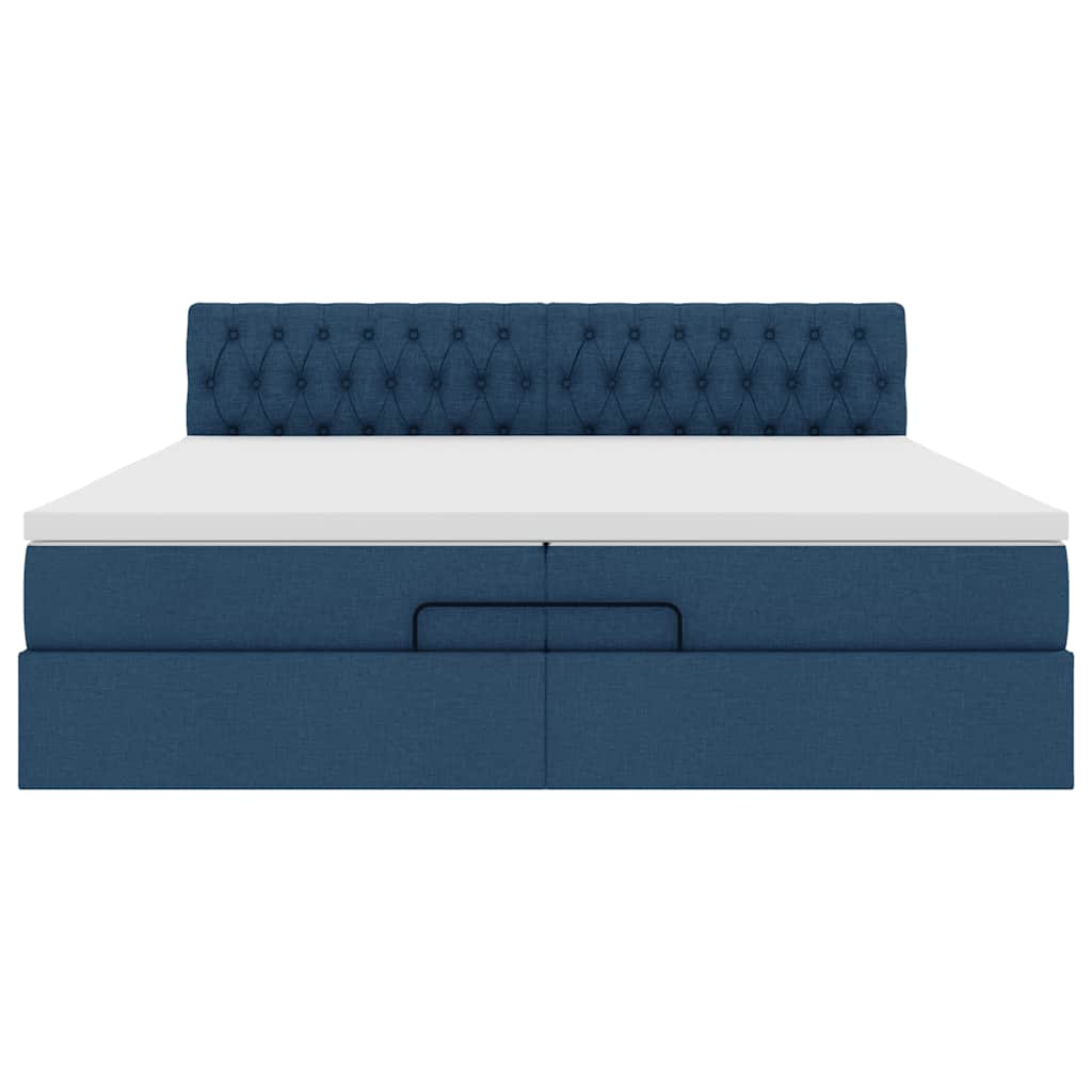 Cadru de pat otoman cu saltea țesătură albastră 200x200 cm GartenMobel Dekor