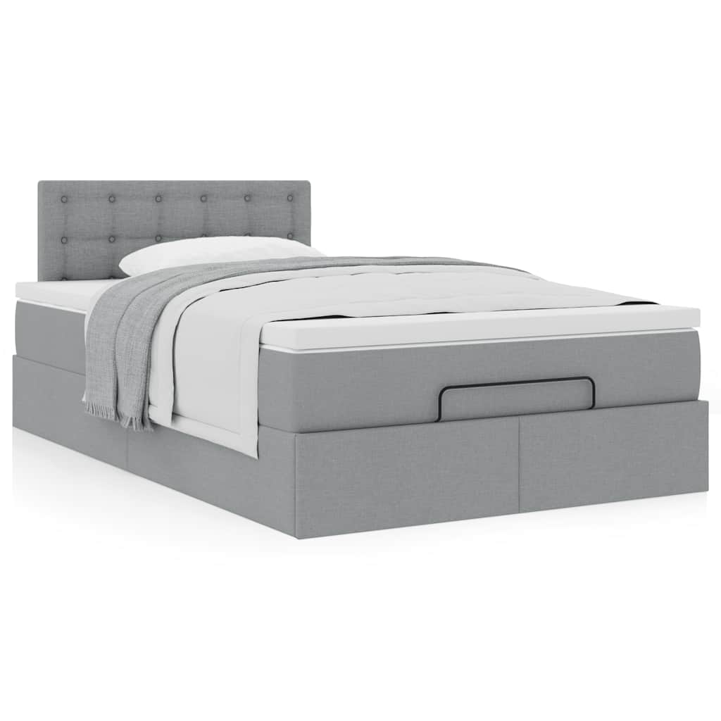 Cadru de pat otoman cu saltea țesătură gri deschis 120x200cm GartenMobel Dekor
