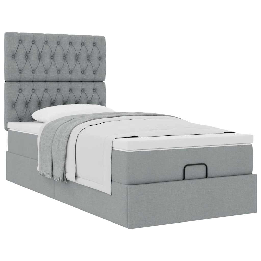 Cadru de pat otoman cu saltea țesătură gri deschis 80x200cm GartenMobel Dekor