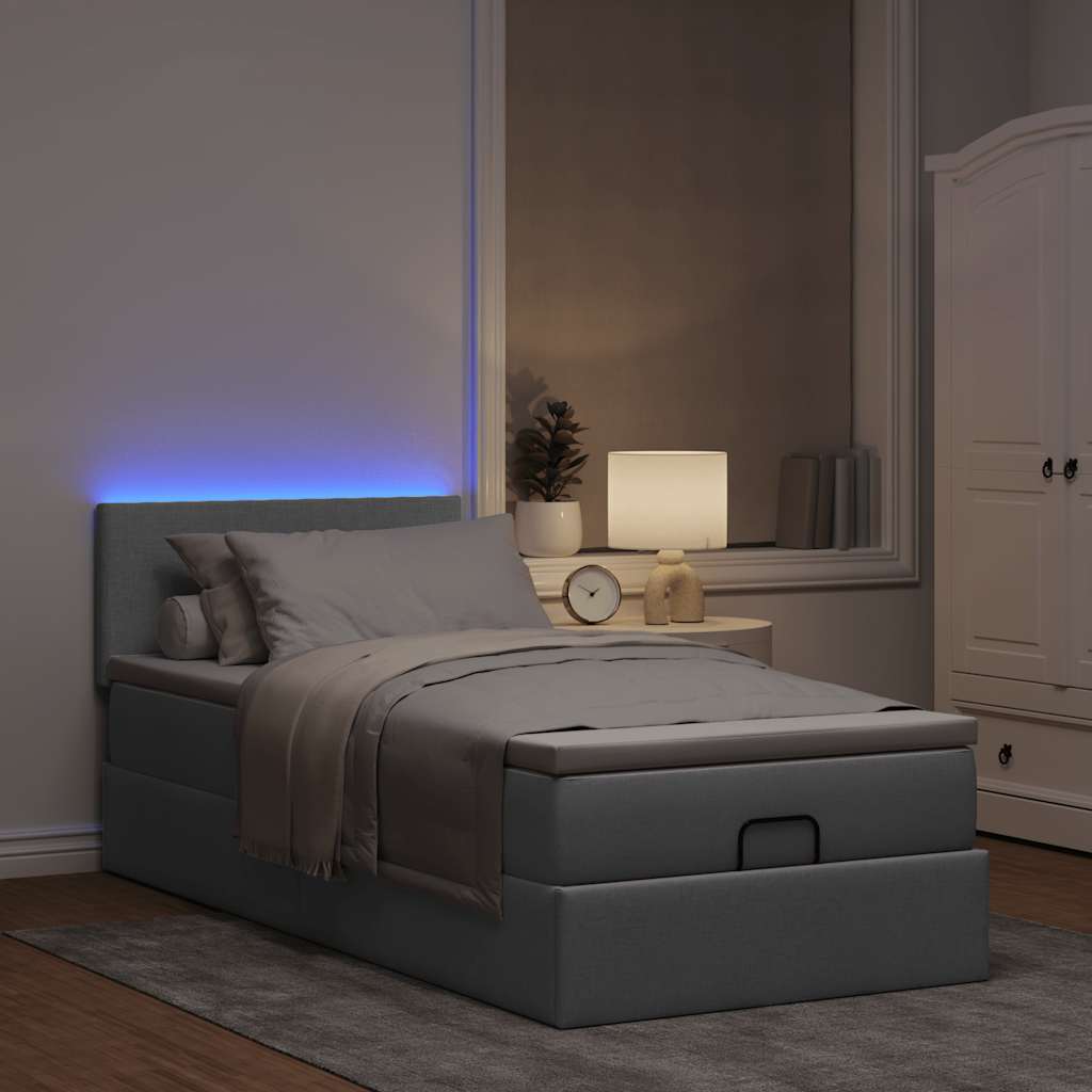 Cadru de pat otoman cu saltea țesătură gri deschis 90x190cm GartenMobel Dekor