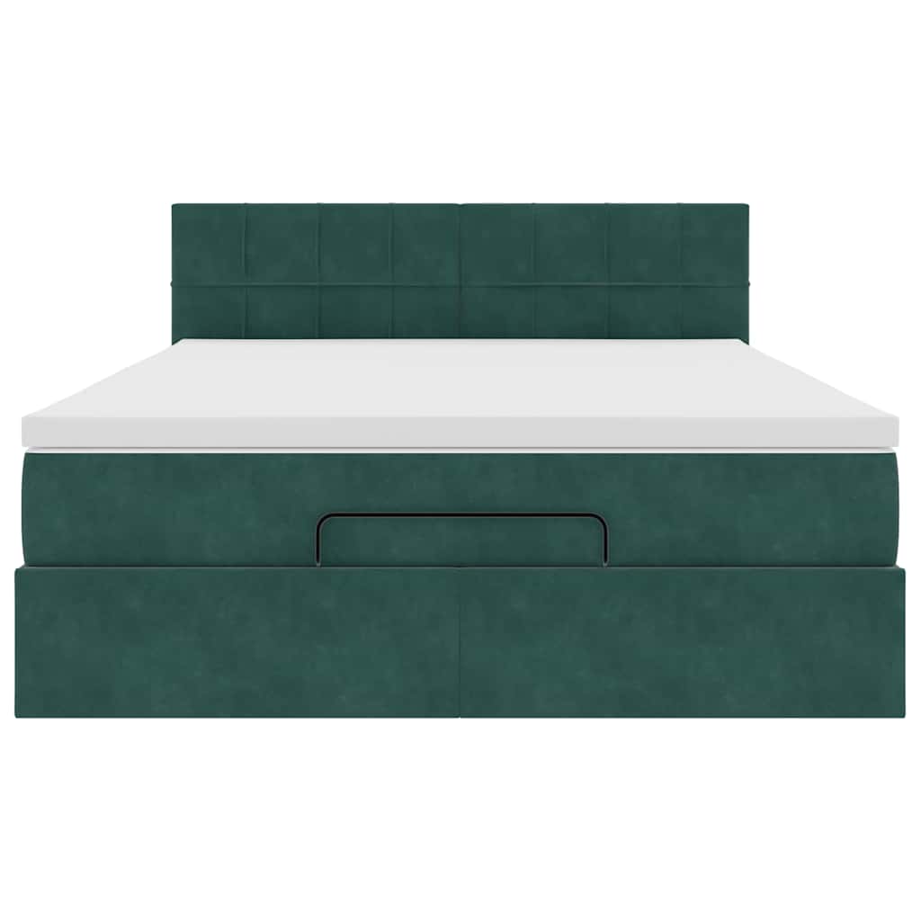 Cadru de pat otoman cu saltea verde închis 140x200cm catifea GartenMobel Dekor