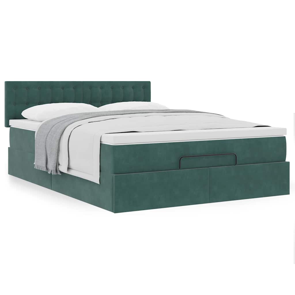 Cadru de pat otoman cu saltea verde închis 140x200cm catifea GartenMobel Dekor