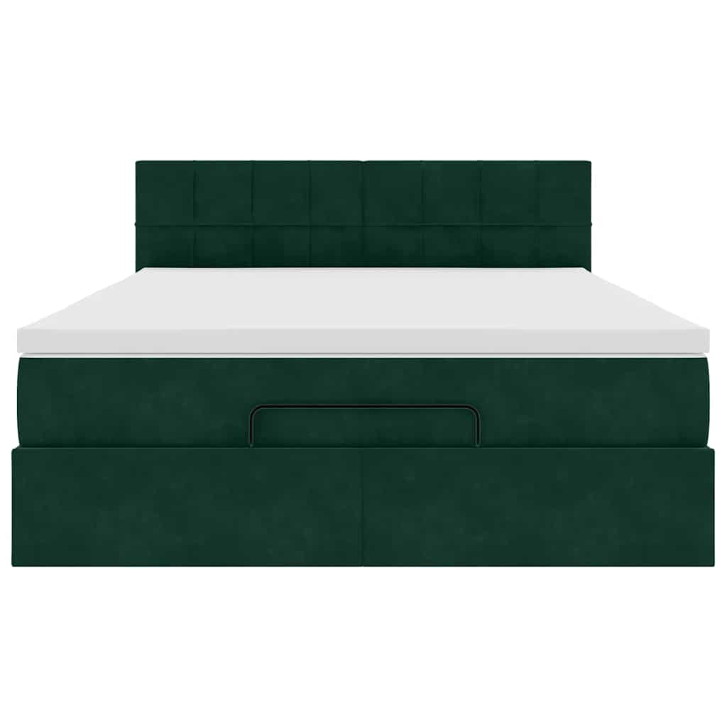 Cadru de pat otoman cu saltea verde închis 140x200cm catifea GartenMobel Dekor
