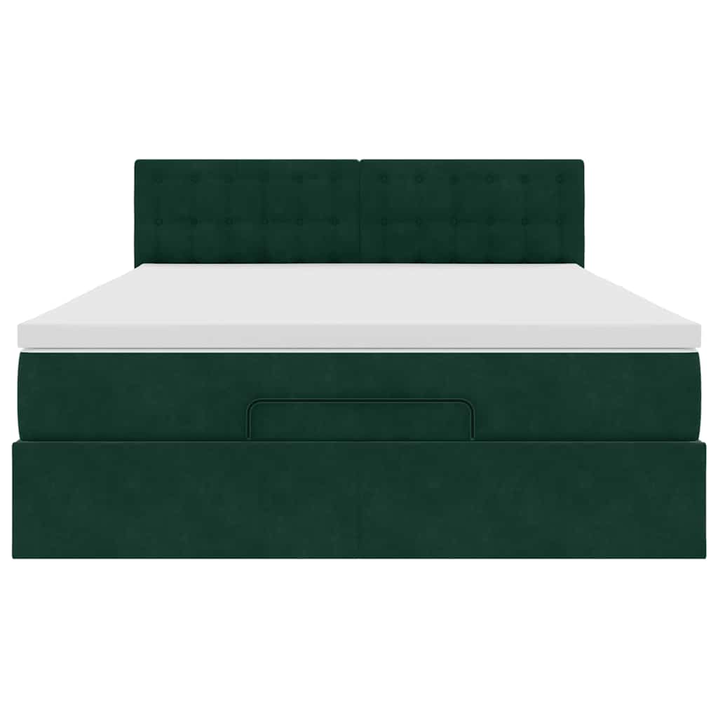Cadru de pat otoman cu saltea verde închis 140x200cm catifea GartenMobel Dekor