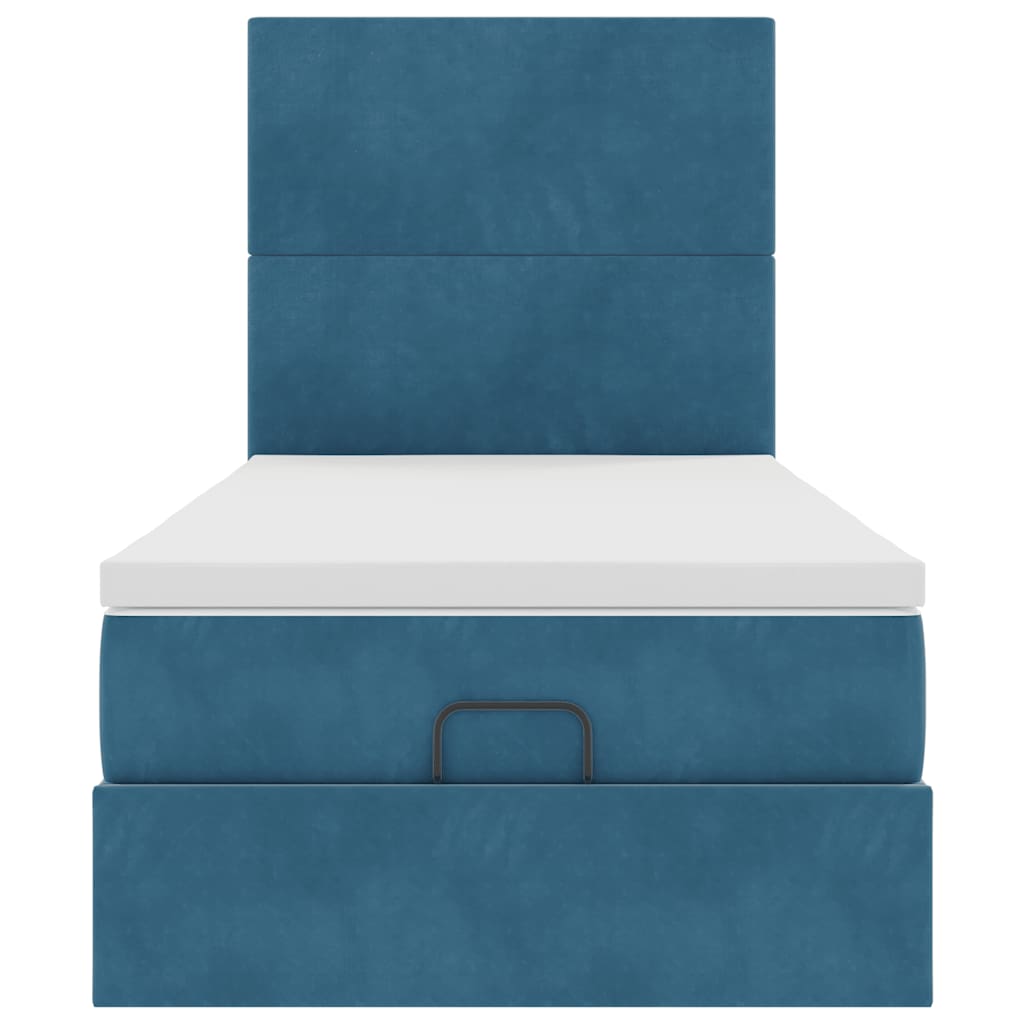 Cadru de pat otoman cu saltele Albastru închis 90x200cm catifea GartenMobel Dekor