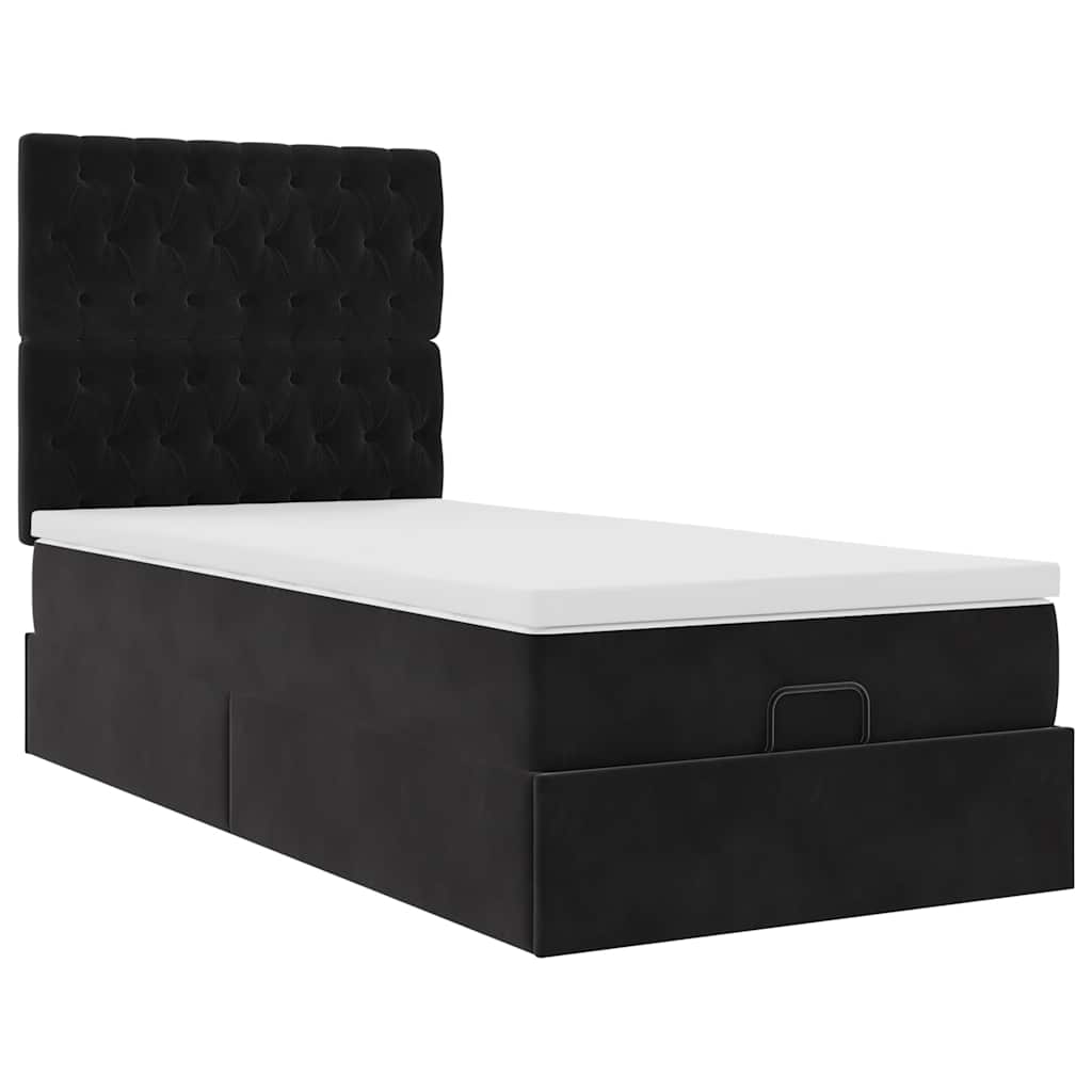 Cadru de pat otoman cu saltele, catifea neagră 100x200cm GartenMobel Dekor